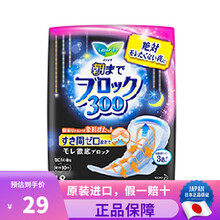花王 (KAO)日本原装进口 花王KAO超瞬吸日夜透气防侧漏干爽洁净防菌卫生巾 夜用有护翼 300mm 18片