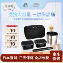 虎牌(TIGER)【日本直邮】真空不锈钢保温便当盒饭盒便携大容量三层LWY-E461