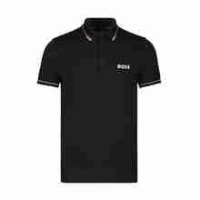 雨果博斯(HUGO BOSS)BOSS男装 修身撞色徽标针织柔软短袖男士商务POLO衫 50506203 黑色 L