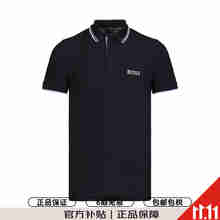雨果博斯(HUGO BOSS)男装 夏季新款棉质纯色条纹领口休闲男士短袖POLO衫 藏青色 S