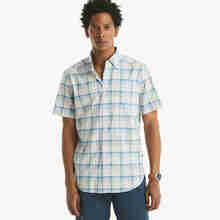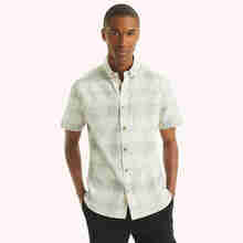 诺帝卡(NAUTICA) 格子短袖衬衫男夏季轻质休闲透气凉爽亲肤时尚百搭职业上班 帆白色 XS