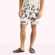 诺帝卡(NAUTICA)夏季短裤休闲印花竹节棉抽绳腰带7英寸弹力舒适时尚外出中裤夏裤 亮白色 XS