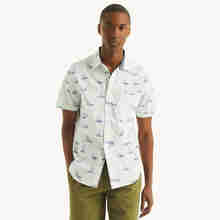 诺帝卡(NAUTICA)印花牛津短袖衬衫男夏季短袖休闲透气凉爽亲肤度假送男友WR5513 亮白色 XS