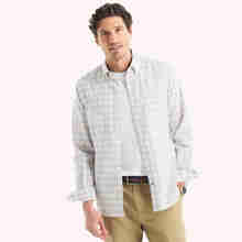 诺帝卡(NAUTICA) 早秋抗皱格子衬衫长袖外套免烫棉质混纺亲肤透气休闲圆摆帅气 亮白色 XS