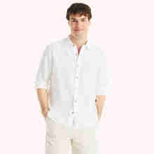 诺帝卡(NAUTICA)亚麻甲板衬衫男夏季轻质休闲透气凉爽亲肤时尚百搭职业上班 亮白色 XS