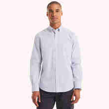 诺帝卡(NAUTICA) 早秋长袖条纹衬衫抗皱棉质纽扣领商务时尚经典休闲潮牌简约 亮白色 XS