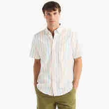 诺帝卡(NAUTICA)条纹短袖衬衫男夏季短袖休闲职场修身日常舒适耐穿透气时尚WR5603 帆白色 XS