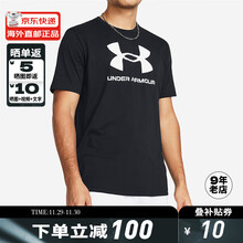 安德玛(Under Armour)春夏SPORTSTYLE LOGO男子训练运动短袖T恤1382911_001 黑白色 欧码,建议拍小一码 L