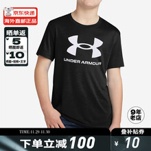 安德玛(Under Armour) 新款男童短袖运动T恤 青少年男孩休闲透气上衣学生运动衫1363282 黑色001 L