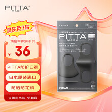 PITTA日本进口pitta口罩防尘防晒防花粉防雾霾男女潮流时尚口罩可水洗 黑灰色 均码3枚装