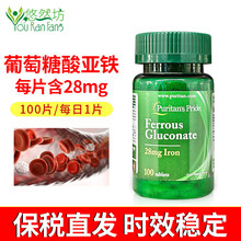 普丽普莱Puritan's Pride美国进口补铁 葡萄糖酸亚铁100片 易吸收不刺激 100片 1瓶