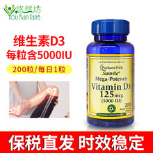 普丽普莱(Puritan's Pride) 美国进口维生素D3软胶囊成人 维生素D3 5000IU 200粒