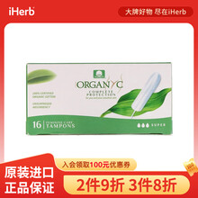 Organyc 卫生棉条 16条 日常吸收 吸水轻薄舒适长久透气不侧漏无感无异味不刺激柔软