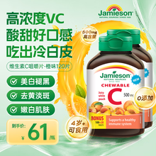 健美生维生素c片VC咀嚼片增强免疫力美白去痘印淡斑内服变白褪黑色素维c 【高浓度VC好吃好胃口】2瓶*橙子味