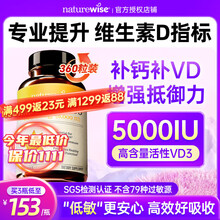 naturewise维生素d3活性阳光瓶d3 2000IU维他命d成人孕妇中老年补钙促钙吸收 【5000IU360粒】羟基D<20 促进钙磷吸收