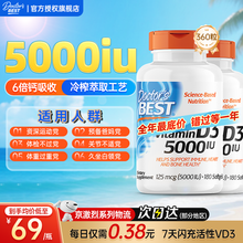 Doctor's Best金达威维生素D3软胶囊5000iu阳光瓶高活性成人vd补钙美国进口 【强健骨骼助钙吸收】5000iu180粒*2瓶