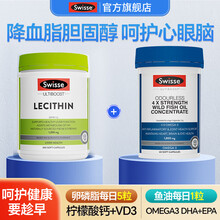 Swisse深海鱼油软胶囊降血脂含dha epa呵护心眼脑补脑提记忆Omega-3 【软化血管降血脂】鱼油60粒+卵磷脂 300粒*1瓶