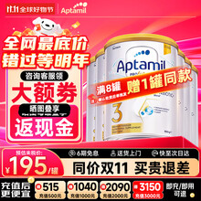 爱他美(Aptamil)澳洲白金版 含DHA段叶黄素婴幼儿牛奶粉保税新西兰原装进口 3段 6罐【膨胀金至高赠150元 价保双11】