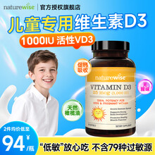 自然薇萃维生素d3儿童3-12岁维生素d3 2000iu1000iu青少年阳光瓶活性vd3 【儿童补充VD3尝鲜装】1000IU 90粒*1瓶