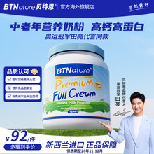 BTNature奶粉中老年人蓝一号胖高个子钙送礼长辈父母贝特恩澳洲进口1kg 【营养全面 0蔗糖】全脂1罐1kg