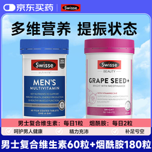 Swisse斯维诗男士复合维生素b族维D维C 45种营养增强免疫力多维能量片 【补足亏空】男士维生素60粒+烟酰胺 180粒*1瓶