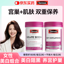 Swisse大豆异黄酮 荷尔蒙补充雌激素女 更年期 卵巢保养 延缓衰老黄体酮 【美白亮肌肤】葡萄籽 180粒*1瓶 +大豆异黄酮