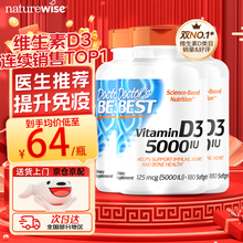 Doctor's Best金达威维生素D3软胶囊5000iu阳光瓶高活性成人vd补钙美国进口 【家庭装推荐】5000iu180粒*3瓶