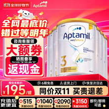 爱他美(Aptamil)澳洲白金版 含DHA段叶黄素婴幼儿牛奶粉保税新西兰原装进口 3段 6罐【膨胀金至高赠150元 价保双11】
