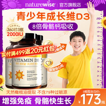 自然薇萃维生素d3儿童3-12岁 2000iu青少年阳光瓶d3维生素 增强免疫力长高 【2000IU360粒3瓶】囤货超划算