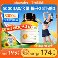 naturewise维生素d3活性阳光瓶d3 2000IU维他命d成人孕妇中老年补钙促钙吸收 【3瓶直降87元】5000IU囤货选 360粒*3瓶