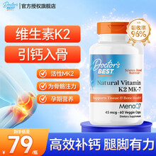 多特倍斯(Doctor's Best)金达威维生素K2天然素食胶囊45mg活性K2软胶囊促进骨骼吸收成人 【促钙吸收】天然维生素K260粒45mcg/瓶