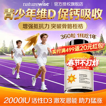 自然薇萃维生素d3儿童3-12岁18岁2000iu青少年阳光瓶d3维生素增强免疫长高 【2000IU1年量】快速助高 360粒*1瓶