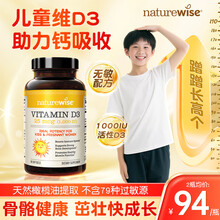 自然薇萃维生素d3儿童3-12岁维生素d3 2000iu1000iu青少年阳光瓶活性vd3 【3岁以上 日常补充】1000IU 90粒*1瓶