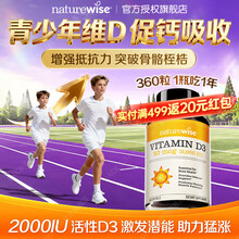 自然薇萃维生素d3儿童3-12岁 2000iu青少年阳光瓶d3维生素 增强免疫力长高 【2000IU360粒】快速助高 1瓶吃1年