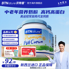BTNature奶粉中老年人蓝一号胖高个子钙送礼长辈父母贝特恩澳洲进口1kg 【关爱父母健康】全脂3罐3kg