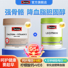 Swisse钙片中老年补钙片中老年人腿抽筋腰腿疼骨质疏松 成人vd柠檬酸钙 【干净血管+补钙】卵磷脂+钙片 300粒*1瓶