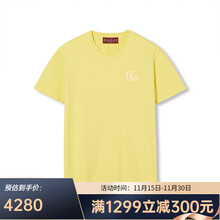 古驰(GUCCI)女士短袖纯色字母饰刺绣针织棉T恤短袖798764 XJG6U 7613黄色预售 XS