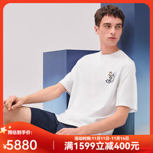爱马仕(HERMES)T恤男款全棉短袖“H Puzzle”皮革细节T恤H557930HA 90白色预购 L