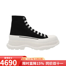 亚历山大麦昆(Alexander McQueen)MCQ女鞋 女士系带厚底增高休闲鞋运动鞋礼物 黑色697072 W4MV2 1070 35.5