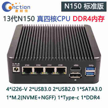 康耐信N150/N100软路由器整机DDR4内存4网口I226-V/2.5G/2500M迷你主机nas一体机工控机智能迷你路由器 N150标准版/017黑色机壳/4个2.5G网口 4G内存/128G硬盘/带30W电源