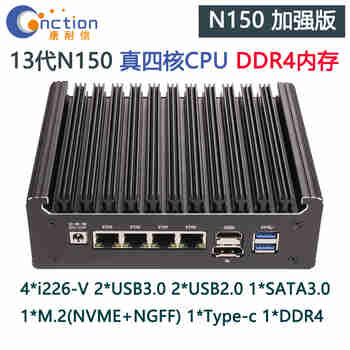 康耐信N150/N100软路由器整机DDR4内存4网口I226-V/2.5G/2500M迷你主机nas一体机工控机智能迷你路由器 N150加强版/018黑色机壳/4个2.5G网口 4G内存/128G硬盘/带30W电源