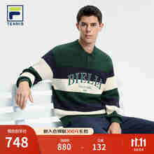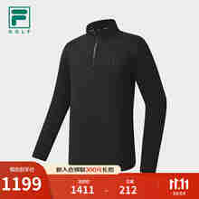 FILA 斐乐官方男子针织长袖上衣2025冬季新款高尔夫运动半拉链长T 深黑-BK M 170/92A/M