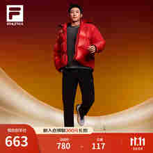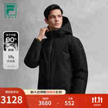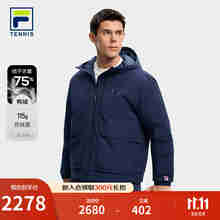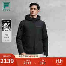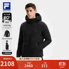 FILA 斐乐官方男士羽绒服2025冬新款高尔夫运动基础连帽保暖外套 深黑-BK M 170/92A/M