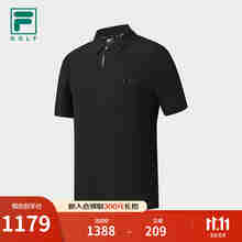 FILA 斐乐官方男子针织短袖POLO衫2025冬新款高尔夫运动防晒上衣 深黑-BK M 170/92A/M