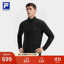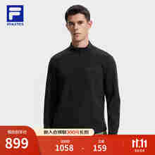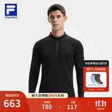 FILA 斐乐官方男子针织长袖衫2025冬季新款健身运动加绒半拉链长T 深黑-BK M 170/92A/M