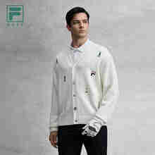 FILA 斐乐官方男士针织长袖外套2025冬新款健身运动简约基础上衣 深黑-BK M 170/92A/M