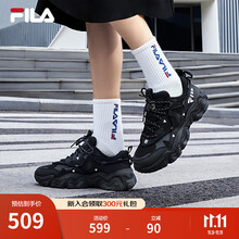 FILA 斐乐猫爪鞋4代女鞋老爹鞋情侣运动鞋复古时尚休闲鞋网面透气 【女款】黑-BK 37.5