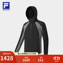 FILA 斐乐官方男士梭织外套2025冬新款健身运动基础拼色连帽上衣 深黑-BK M 170/92A/M