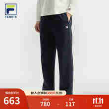 FILA 斐乐易烊千玺同款男士长裤2025冬季新款网球运动宽松加绒直筒裤 静空蓝-BU M 170/80A/M