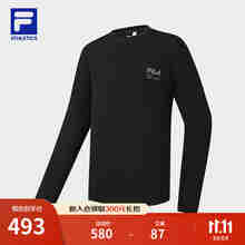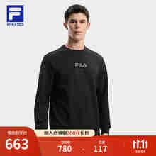 FILA 斐乐官方男士针织长袖上衣2025冬新款户外运动舒适摇粒绒长T 深黑-BK 3XL 190/108A/XXXL